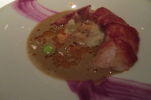Pauls Vorspeisenwahl stellte Küche und Sommelier vor sichtliche und auch eingeräumte Herausforderungen: Letztendlich enstschied sich die Küche für Lobster gefolgt von Schwein und als letzte Vorspeise Foie Gras, was den Sommelier zu einer gewagten aber gelungenen Achterbahnfahrt bei den gewählten Weinen zwang. Für die beiden anderen Mitesser, ergab sich die Reihenfolge der Vorspeisen einfacher: Geräucherter Aal, Sellerie und abschließend Lobster.