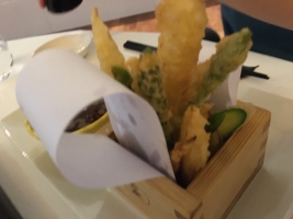 Der vegetarische Gang bestand aus Avokado-Rolls und Gemüsetempura.