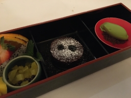 Dazu gab es einen Sake höchster Qualitätsstufe (»Junmai Daiginjō-shu«). Der Empfehlung des Sommeliers folgend, nach jeden Stück Sushi ein Schlückchen Sake zu trinken, was der Gesamtgeschmacksvielfalt äußerst zuträglich war, erforderte für einen der Beteiligten ein zweites Gläschen dieses exquisiten Sake.