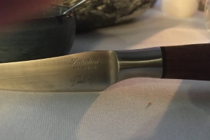 Doch vor dem fleischlichen Genuss stand noch die Herausforderung, das passende Holz für den Messergriff auszuwählen. Anscheinend erlaubt dessen Auswahl dem begnadeten Koch Rückschlüsse auf feinste Bratnuancen für die vollkommene »Genussreise mit dem Stern«. Die Wahl fiel auf Nussbaum.