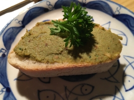 Brokkoli, Mandeln und Kresse mit Olivenöl fein pürieren und mit Salz und frisch gemahlenem Pfeffer würzen.