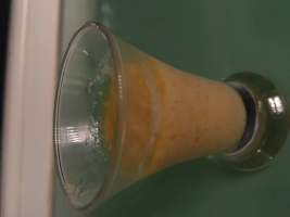 Den Eierlikör in sterilisierte Flaschen füllen. und mit dem Essigsud auffüllen.