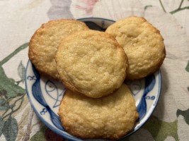 Den Backofen auf 190°C vorheizen und je einen Esslöffel der Teigmasse in 10 cm Abstand auf ein mit Backpapier ausgelegtes Blech geben. Die Bleche nacheinander in den Ofen geben und die Kekse 7 Minuten backen.