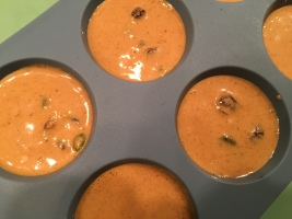 Das Eiweiß aufschlagen und den Honig vorsichtig unterrühren. Die Mischung bei kleiner Hitze und unter ständigem Rühren 50 Minuten erwärmen. Die Oblaten auf Größe der Muffin-Näpfchen ausstechen und in die Muffin-Formen legen.