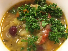Zum Servieren, die Ribollita mit Salz und Pfeffer abschmecken, in Schalen füllen und mit Petersilie bestreuen.