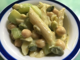 Nudeln und Kichererbsen gründlich mit der Marinade vermengen. Das Fruchtfleisch der Avocado würfeln und zu den Nudeln geben. Die Gurke schälen, würfeln und gemeinsam mit den Pistazien unterheben. Nun den Salat gründlich vermischen, abschmecken und etwas ziehen lassen.