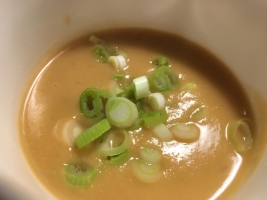 Mit in dünnen Scheiben geschnittenen Lauchzwiebeln servieren.