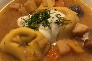 Russische Tortelloni-Suppe