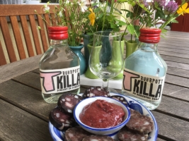Die Kohlenpottvariante des Tequila: Senf und Wurst, danach den Korn. Wer's ohne Alkohol mag, nimmt einfach Wasser statt Korn.