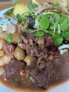 Außer Haus: Heute Mittag hat es uns vorzüglich gemundet. Das Gulasch war große Klasse! Weiter so! Wir bleiben deine Kunden! Das Wildgulasch läßt sich auch hervorragend mit Kartoffel, Schwarzwurzel und Babyspinat kombinieren. Dazu passt beispielsweise ein schöner Lemberger, z.B. ein »Löwenherz« Jahrgang 2017 vom Weingut Albrecht-Kiessling in Heilbronn.