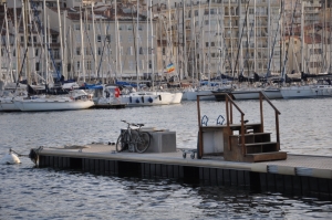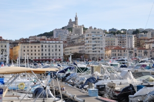 Am nächsten Morgen gelangen wir in einer Regenpause trockenen Fußes zum Gare de Lyon, wo uns der TGV erwartet, der uns in nur etwas mehr als drei Stunden ins 750 Kilometer entfernte Marseille bringt. Der Bahnhof Marseille St. Charles ist der Ort der langersehnten Familienzusammenführung unter den Strahlen der dem Ereignis angemessen ungetrübten Sonne. Zwei Metrostationen weiter sind wir bereits am alten Hafen Marseilles angelangt und begeben uns gleich nach unserer Ankunft im Hotel auf einen Fußweg zu einem Aperitif ans andere Ufer der Bucht. Das Damengedeck an diesem Abend: 6cl Porto Rouge, verdünnt mit einem Eiswürfel.