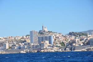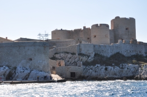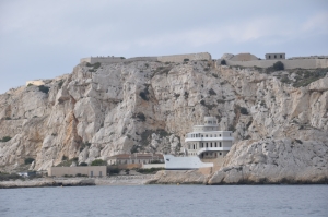 Heute haben wir uns Marseille mal von der Seeseite aus angesehen. Nach Verlassen des ruhigen Hafenbeckens verhalf der deutlich spürbare Wellengang des Mittelmeers zahlreichen Passagieren zu einer erfrischenden Dusche. Und auch die anderen mussten sich mit beiden Händen festhalten, um nicht umgeworfen zu werden. Am Zwischenziel der Fahrt, dem »Château d'If« brauchte der Kapitän dann auch zwei Versuche, bis es ihm endlich gelang, so anzulegen, dass die Passagiere trotz heftigen Schaukelns tatsächlich von und an Bord gehen konnten.