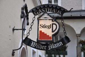 Zum Abendessen steuern wir das in einem kleinen Durchhaus, nicht weit von der touristisch gut gefüllten Getreidegasse, gelegene »Gasthaus Wilder Mann« an, das seine Pforten bereits im Jahre 1864 zur Verköstigung der Salzburger Arbeiter öffnete. Die Bilder im Innern zeigen, dass die Nähe zur Salzach, dem Durchhaus immer wieder venezianische Verhältnisse bescherte und das Gasthaus bei Überschwemmungen nur mit dem Boot erreichbar war. Mit einer klassichen Salzburger Brettljause als Vorspeise und Rost- und Schweinsbraten als Haupgang gestärkt, machen wir uns auf den Weg ins Hotel. Leider hatte die dabei entdeckte Tankstelle schon geschlossen, so dass uns nur der Blick durchs Fenster auf die gutgefüllte Auslage blieb, die davon zeugte, dass die Schließung bestimmt keinem Treibstoffmangel geschuldet war.