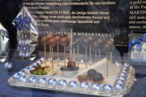 In der »Café-Konditorei Fürst«, dem nachgewiesenen Erfinder der legendären Mozartkugel, gönnen wir uns zwar keine »Original Salzburger Mozartkugel« dafür aber zwei Kugeln leckeres und hausgemachtes Eis: Mirabelle und Cookie-and-Cream. Im Würstlstand am Alten Markt gibt es Bosna und Käsekrainer. Das reicht uns, die Zeit bis zum geplanten Abendessen im »Restaurant Esszimmer« zu überbrücken. Details zu diesem Abendessen finden sich hier.