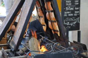 Beim Abstieg zur Salzach bei strahlendem Sonnenschein genießen wir alles was uns die Natur zu bieten hat: Drohend schwarze Krähen und fidele bunte Schmetterlinge. Die Zecke, die sich uns während des Abstiegs angeschlossen hat, entfernt Jeannette auf der Sonnenterrasse des »Salzburg Museum« von ihrer Tasche. Im Museum sehen wir nicht nur ansprechende und anspruchsvolle Kunst (z.B. Arik Brauer), sondern erfahren auch einiges über die eher verschwiegene Geschichte Salzburgs, das für tausend Jahre als »Reservat für den Urlaub« vorgesehen war, mit heiler Natur und Hochkultur. Auch wenn es das an die zu jener Zeit begeistert gefeierten Bücherverbrennungen erinnernde Mahnmal noch nicht gibt, so gibt es doch immerhin ein an die »unbekannten Chaoten« erinnerndes öffentliches Denkmal, ganz in der Nähe vom Eingang zum Museum.