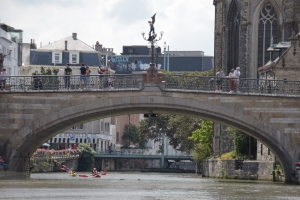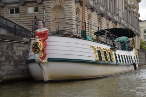 Nicht nur zulande sondern auch zu Wasser ist Gent immer wieder für kleine Entdeckungen gut: Sei es der hoch über den Dächern thronende Probenraum oder auch die düster-morbiden Anspielungen auf dunkelste Wolken oder das Ende mit oder ohne Strick.
