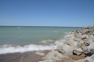 zu einem Spaziergang entlang Ufer und Strand des Lake Michigan.